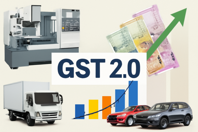 - Mother Sectors Stimulus: Sectors like packaging, aerospace, engineering, and automotive—which depend on tooling—will see increased demand due to lower GST on inputs and transport equipment. GST on cars, buses, trucks, and three-wheelers fell from 28% to 18%, expanding output and, by extension, the demand for tooling products and services.