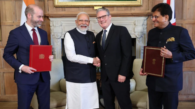 - The UK has opened its manufacturing sector to Indian products with zero duties applied immediately on most items.