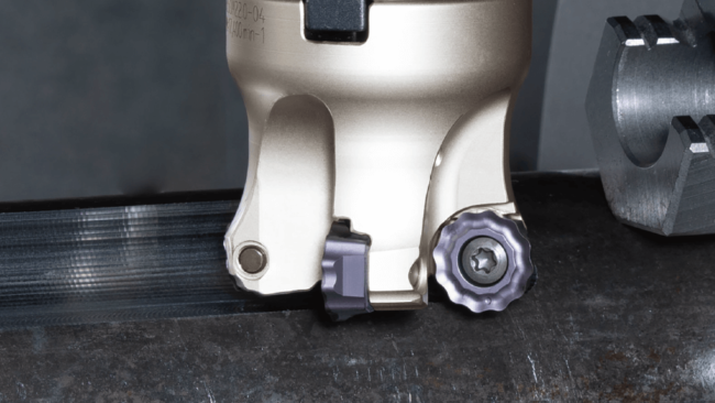 RoundSplit is a round insert type face milling cutter that ensures stable machining by suppressing vibration. Its unique serrated cutting edge design reduces cutting resistance, enabling high productivity even in long overhang or high-feed machining applications.