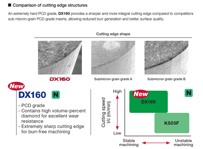 Feature 2: PCD grade DX160 combining high wear resistance and excellent sharpness